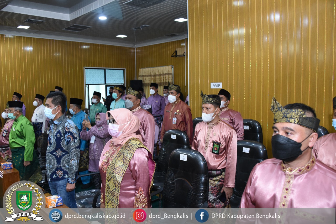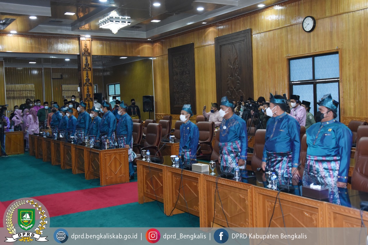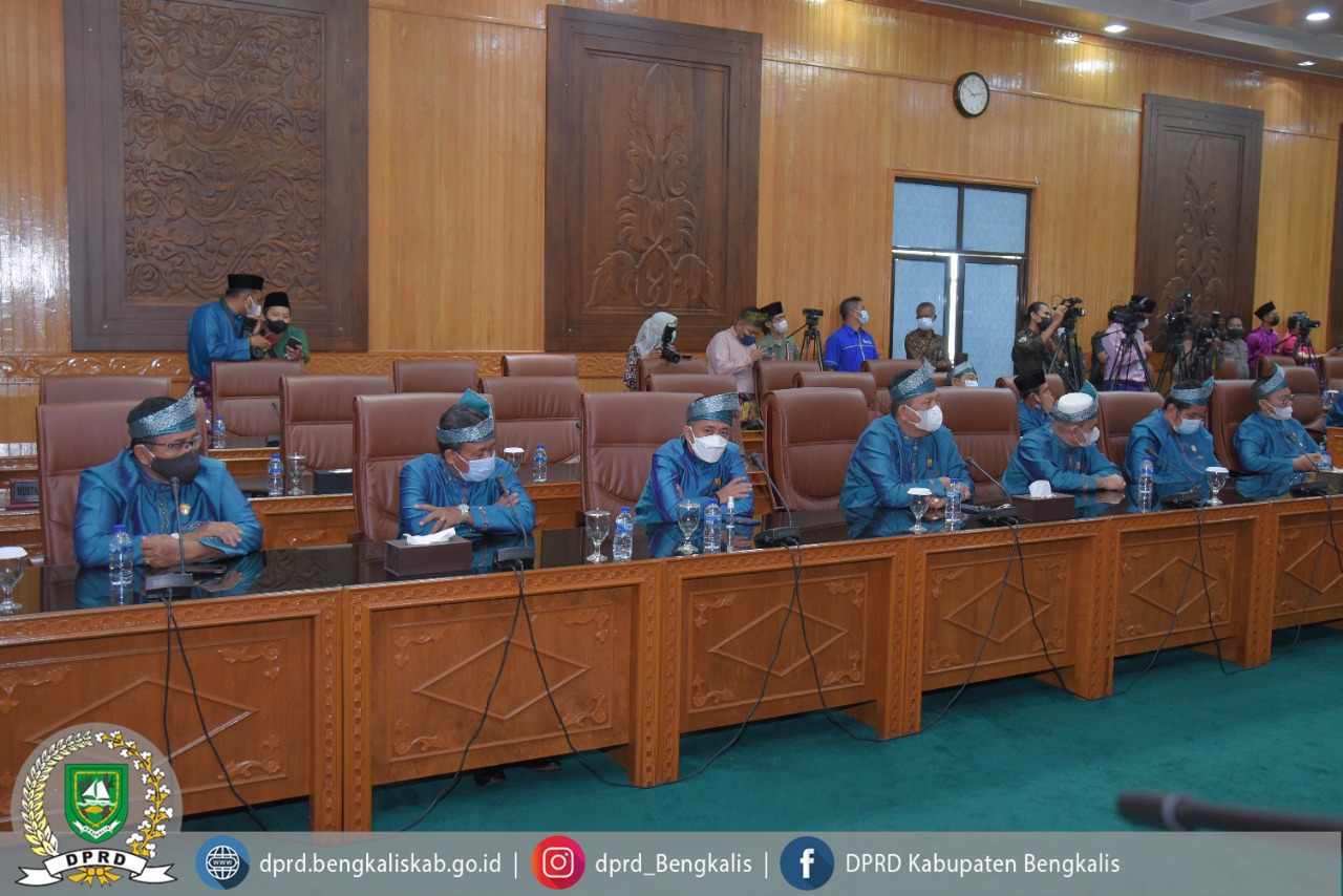 Bengkalis, Humas DPRD - DPRD Kabupaten Bengkalis melaksanakan Paripurna Istimewa Sempena Hari Jadi ke-509 Bengkalis Tahun 2021. Acara ini dilakukan sangat terbatas dan sesuai anjuran pemerintah dengan tetap mematuhi Protokol Kesehatan, Jumat (30/07/2021).