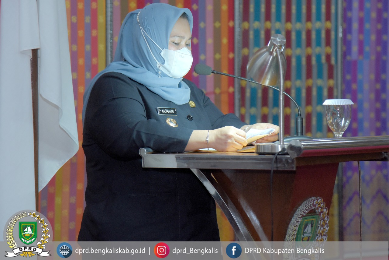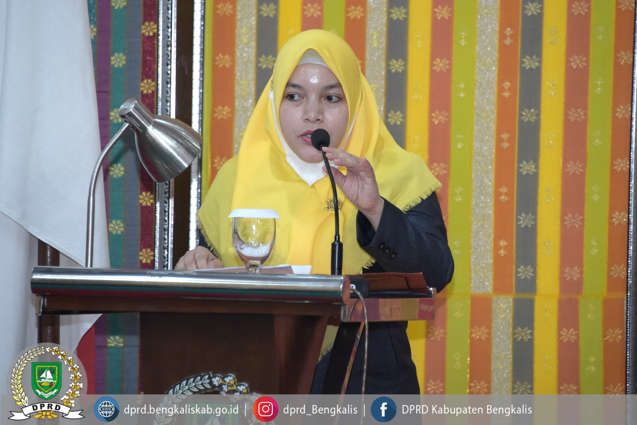 Sebelum itu, dihadapan Bupati Bengkalis Kasmarni, Ketua DPRD H. Khairul Umam, Wakil Ketua Syahrial, Sofyan, dan Syaiful Ardi serta seluruh anggota DPRD dan tamu yang hadir, Ketua Pansus H. Adri menunjuk Rahmah Yenny sebagai juru bicara pansus untuk menyampaikan laporannya.