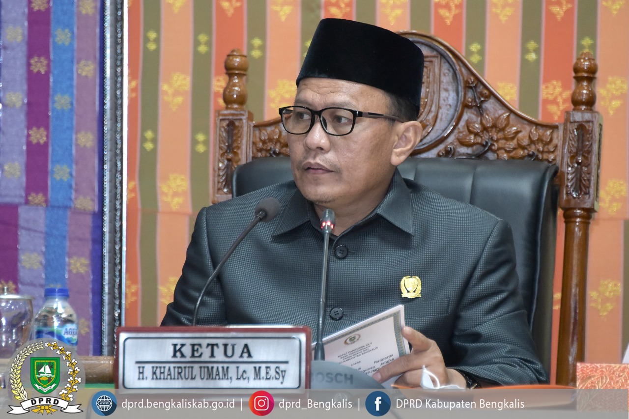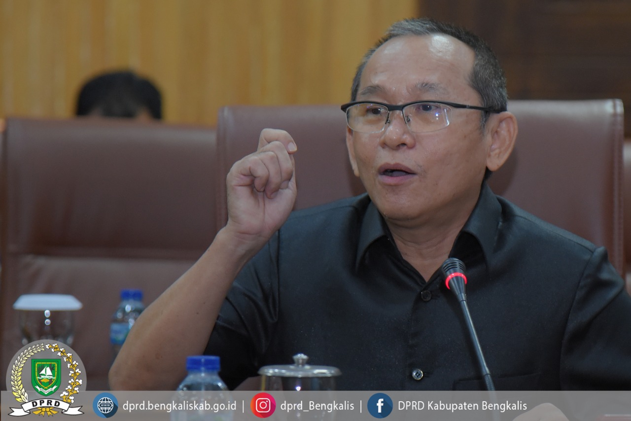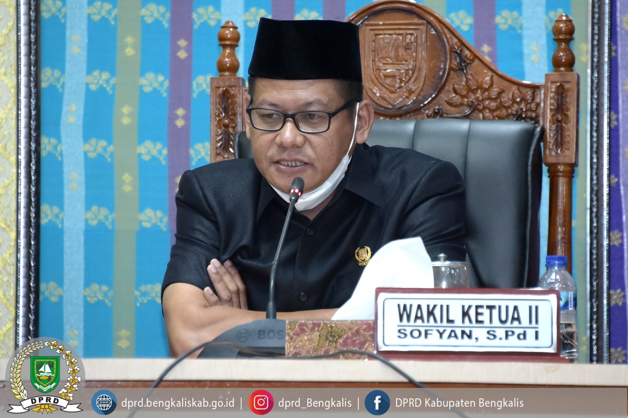 Terakhir Wakil Ketua Sofyan, mengingatkan kepada Bupati bahwa RPJMD merupakan acuan dalam menjalankan roda pemerintahan Kabupaten Bengkalis, untuk itu perlu ada sinergitas dari OPD-OPD terkait dan evaluasi yang rutin untuk mengukur keberhasilan program dan kegiatan secara berkala.