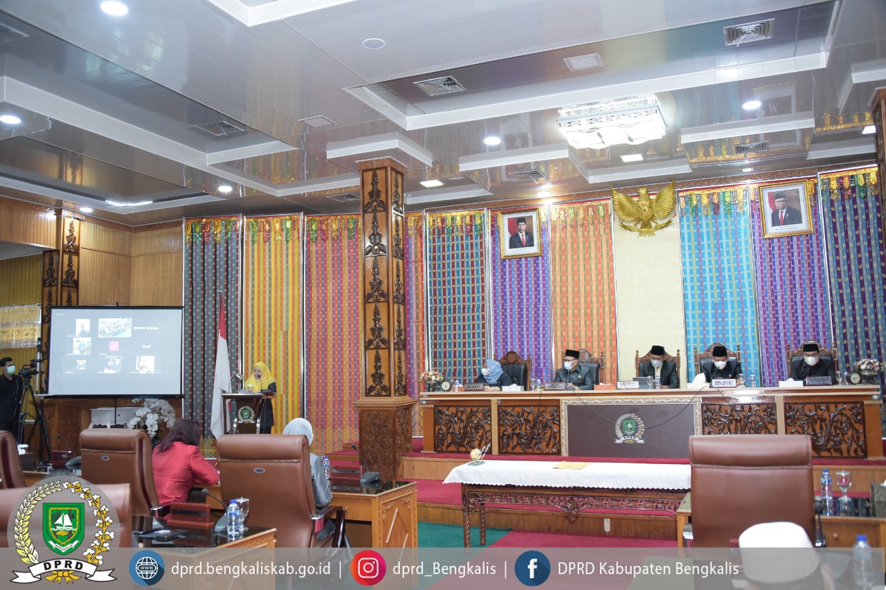 Bengkalis, Humas DPRD - Setelah melewati berbagai proses tahapan sesuai yang diamanatkan oleh peraturan perundang-undangan, Ranpeda Rencana Pembangunan Jangka Menengah Daerah (RPJMD) TA 2021-2026 Kab. Bengkalis disahkan pada paripurna DPRD, Senin (16/08/2021).