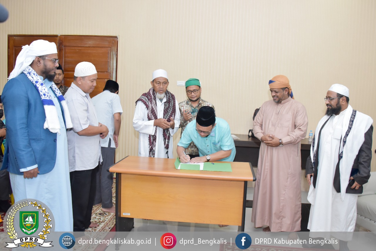 Bengkalis, Humas DPRD - Ketua DPRD Kabupaten Bengkalis mendapat kunjungan Masyayikh Rektor Universitas Al-Quran dari Ulumul Islamyiah Dr. Umar Bejiber, Profesor Umahir dan Dr. Walid yang merupakan Kepala Akademi Bahasa Arab yang besar di Yaman, Selasa (15/03/2022).