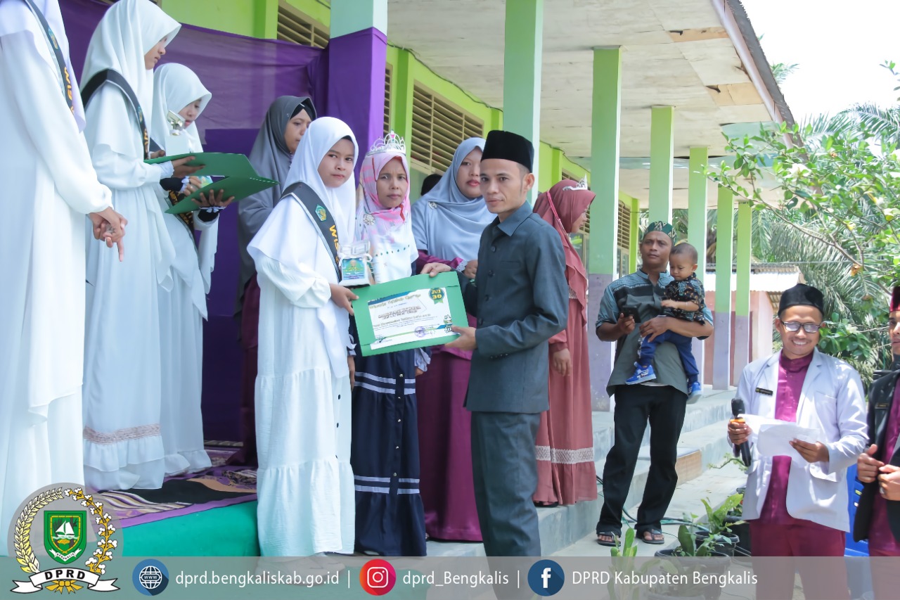 Talang Muandau, Humas DPRD - Anggota Komisi IV DPRD Kabupaten Bengkalis Erwan, S.Sos menghadiri rangkaian kegiatan wisuda Tahfidz Qur'an MTS Miftahul Huda Tasik Serai, Bagan Benio 1 Juz, pada Selasa (29/03/2022).