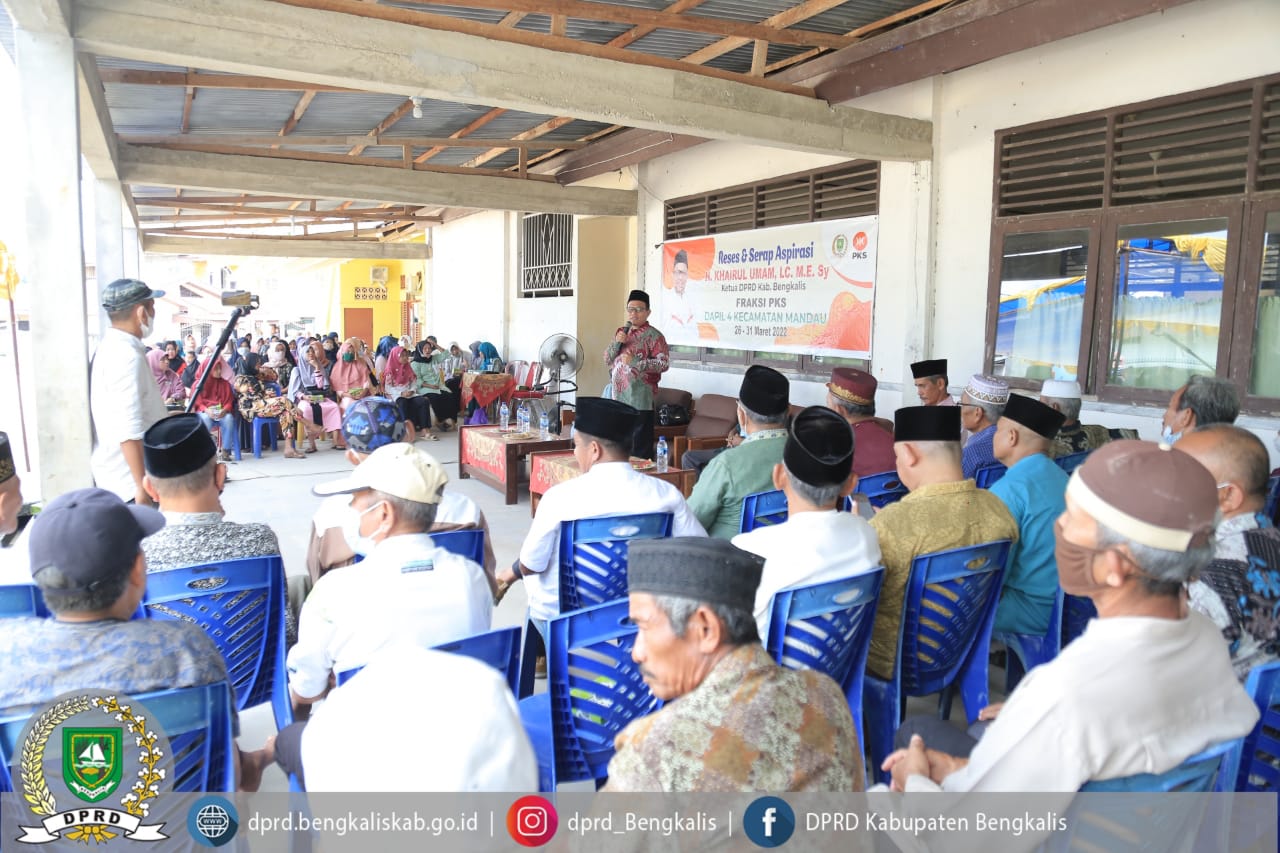 Mandau, Humas DPRD - Reses Ketua DPRD Kabupaten Bengkalis H. Khairul Umam Dapil Kecamatan Mandau disambut antusias warga, pada Selasa (29/03/2022).