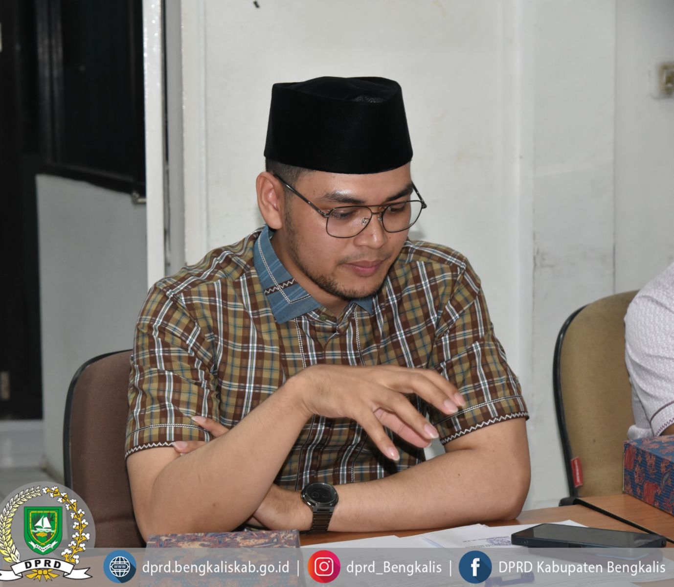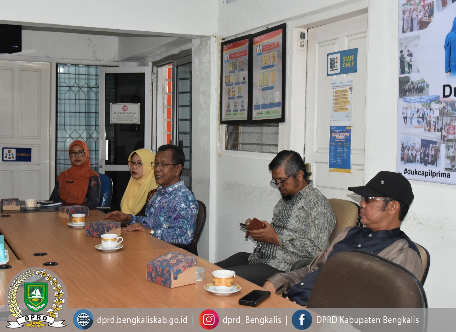 Anggota Komisi I, Surya Risky, menggali informasi terkait bentuk legalisasi yang diterapkan Disdukcapil Kota Bukit Tinggi sebagai bahan perbandingan dengan pelayanan di Kabupaten Bengkalis, khususnya terkait regulasi dan proses pelayanan masyarakat.
