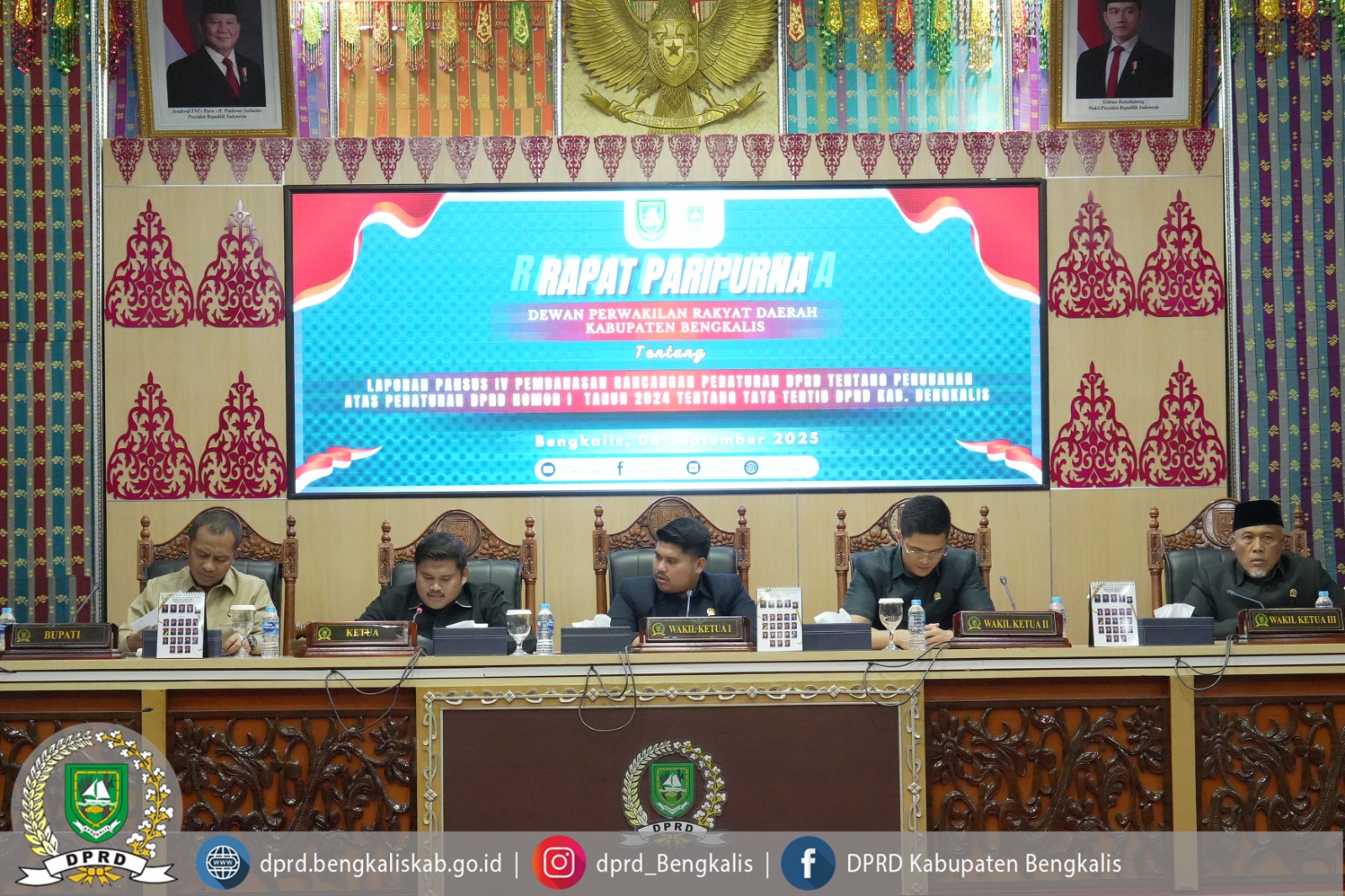 Rapat dipimpin Ketua DPRD Septian Nugraha didampingi Wakil Ketua I M. Arsya Fadillah, Wakil Ketua II Hendrik Firnanda Pangaribuan, dan Wakil Ketua III H. Misno. Hadir pula Bupati Bengkalis yang diwakili Wakil Bupati Dr. H. Bagus Santoso.