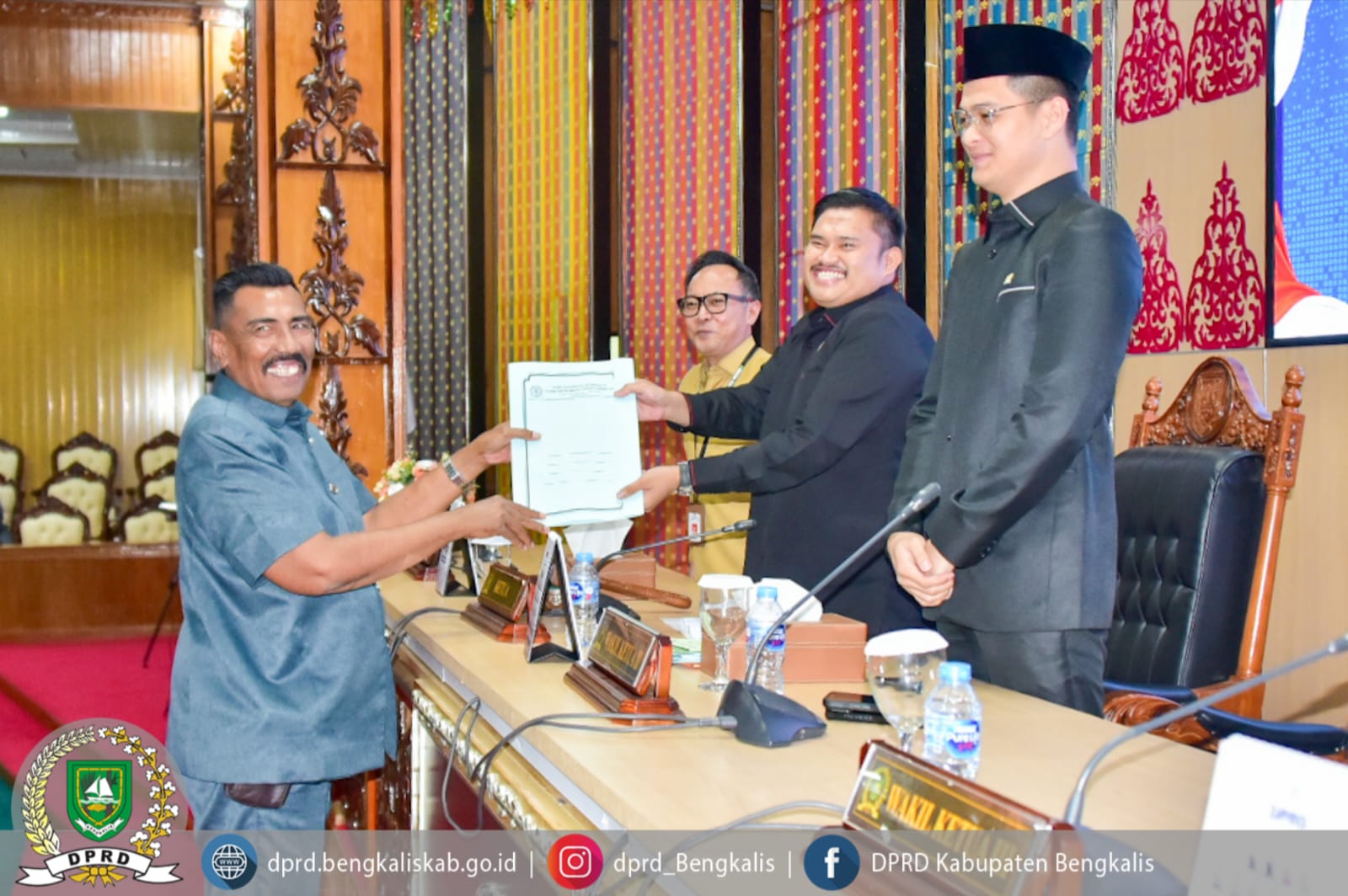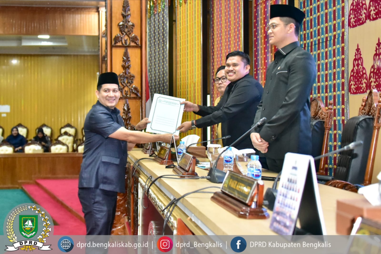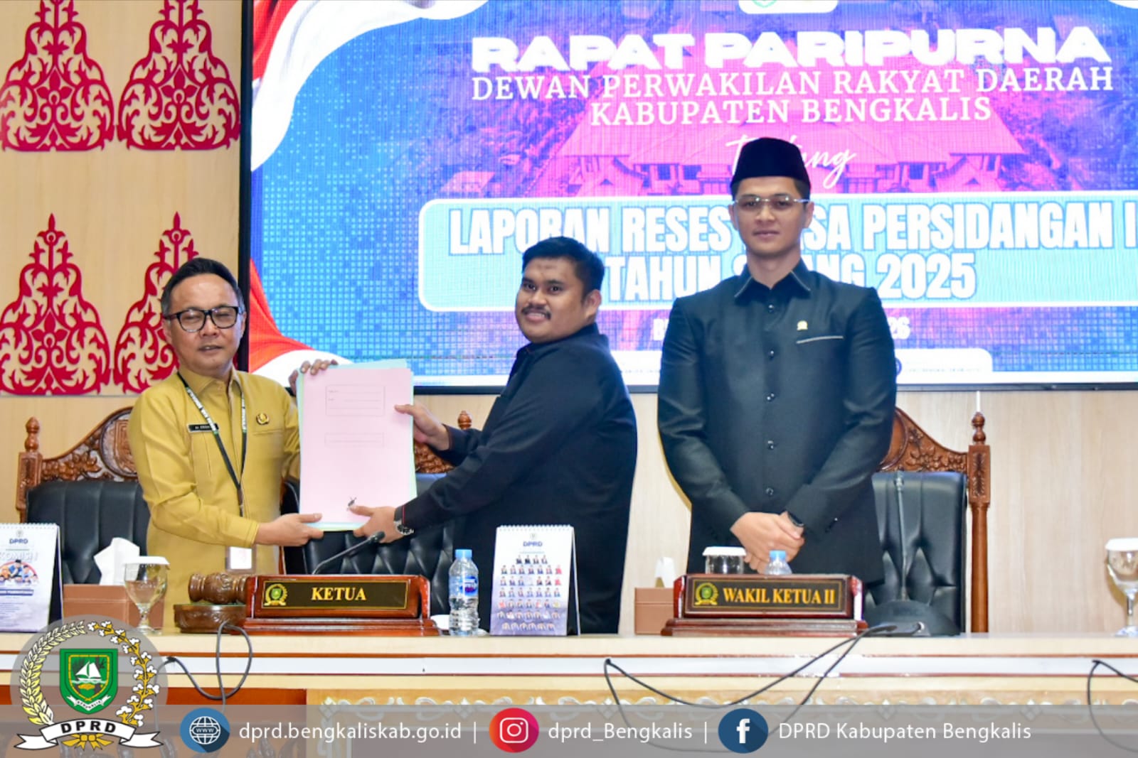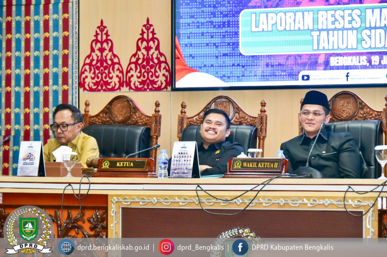 Rapat paripurna tersebut dipimpin oleh Ketua DPRD Kabupaten Bengkalis Septian Nugraha, S.E., M.I.P., didampingi Wakil Ketua II DPRD Kabupaten Bengkalis Hendrik Firnanda Pangaribuan, serta dihadiri Sekretaris Daerah Kabupaten Bengkalis dr. Ersan, TH.