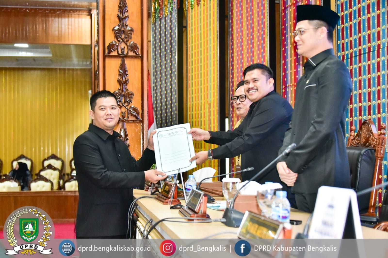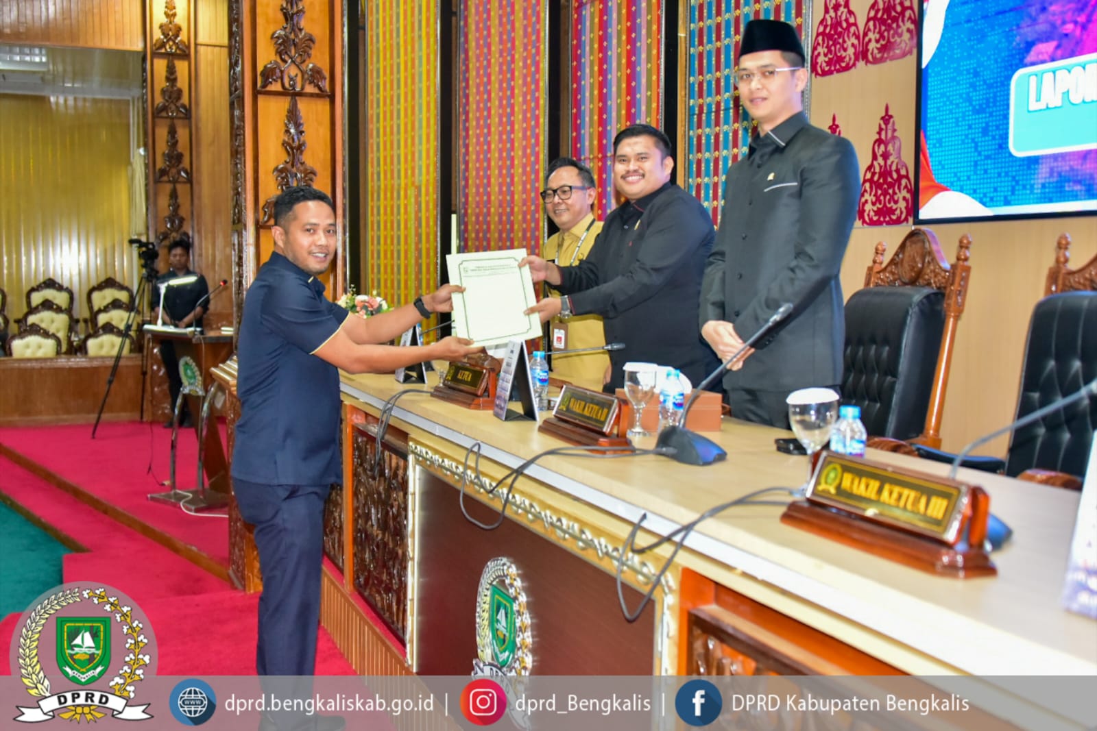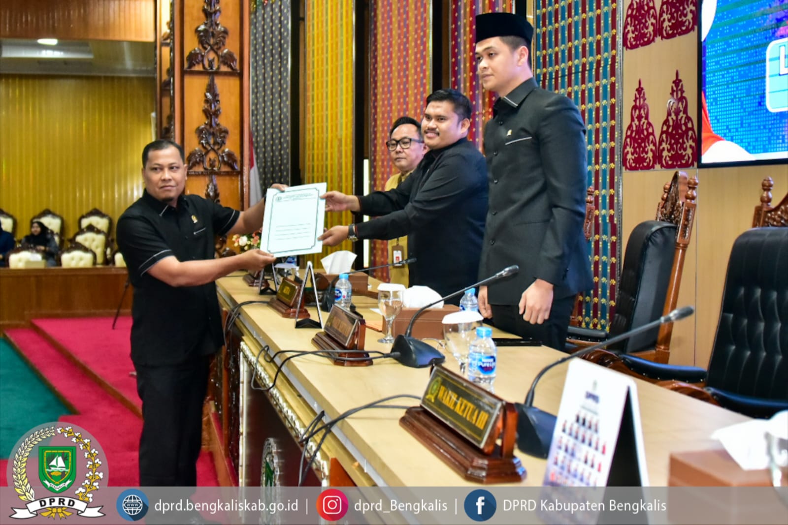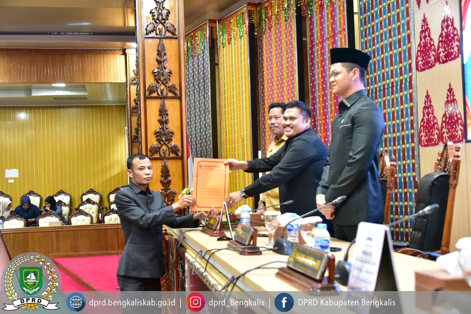 Rapat paripurna tersebut dipimpin oleh Ketua DPRD Kabupaten Bengkalis Septian Nugraha, S.E., M.I.P., didampingi Wakil Ketua II DPRD Kabupaten Bengkalis Hendrik Firnanda Pangaribuan, serta dihadiri Sekretaris Daerah Kabupaten Bengkalis dr. Ersan, TH.