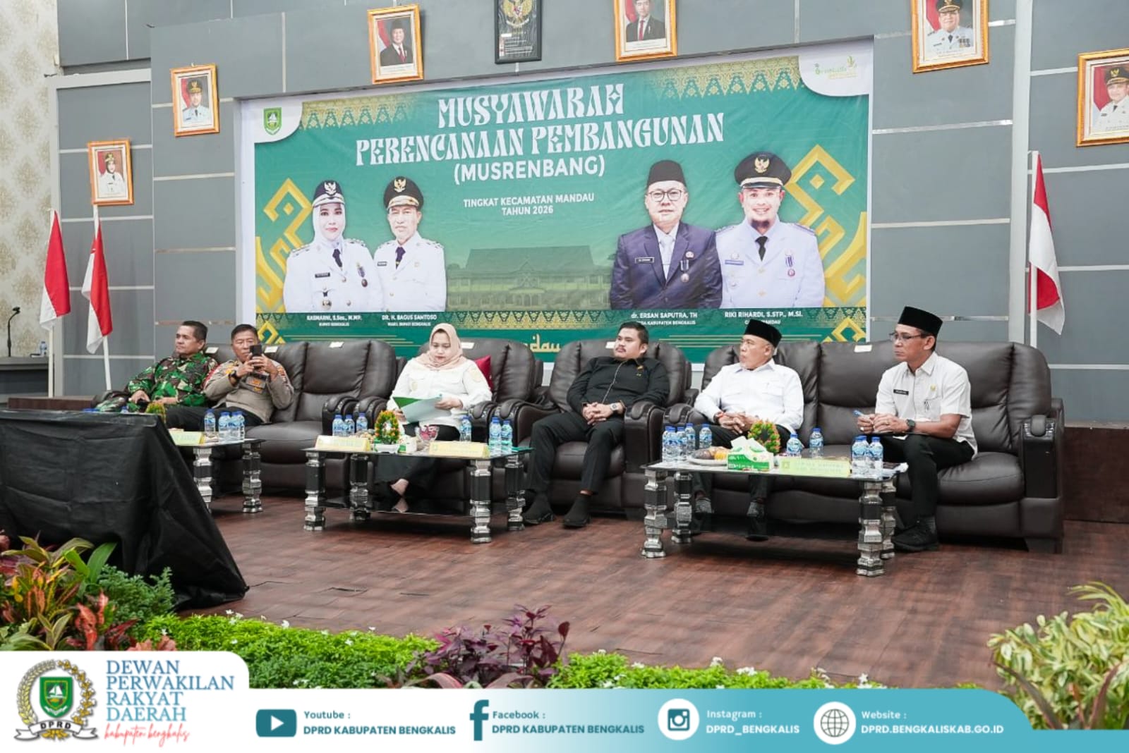 Ketua DPRD Kabupaten Bengkalis, Septian Nugraha, dalam sambutannya menyampaikan apresiasi dan ucapan terima kasih kepada Pemerintah Kabupaten Bengkalis atas terselenggaranya Musrenbang Tingkat Kecamatan Mandau Tahun 2026. Ia mengatakan bahwa Musrenbang merupakan momentum penting dalam mewujudkan pemerataan pembangunan serta pemenuhan kebutuhan masyarakat secara berkeadilan.
