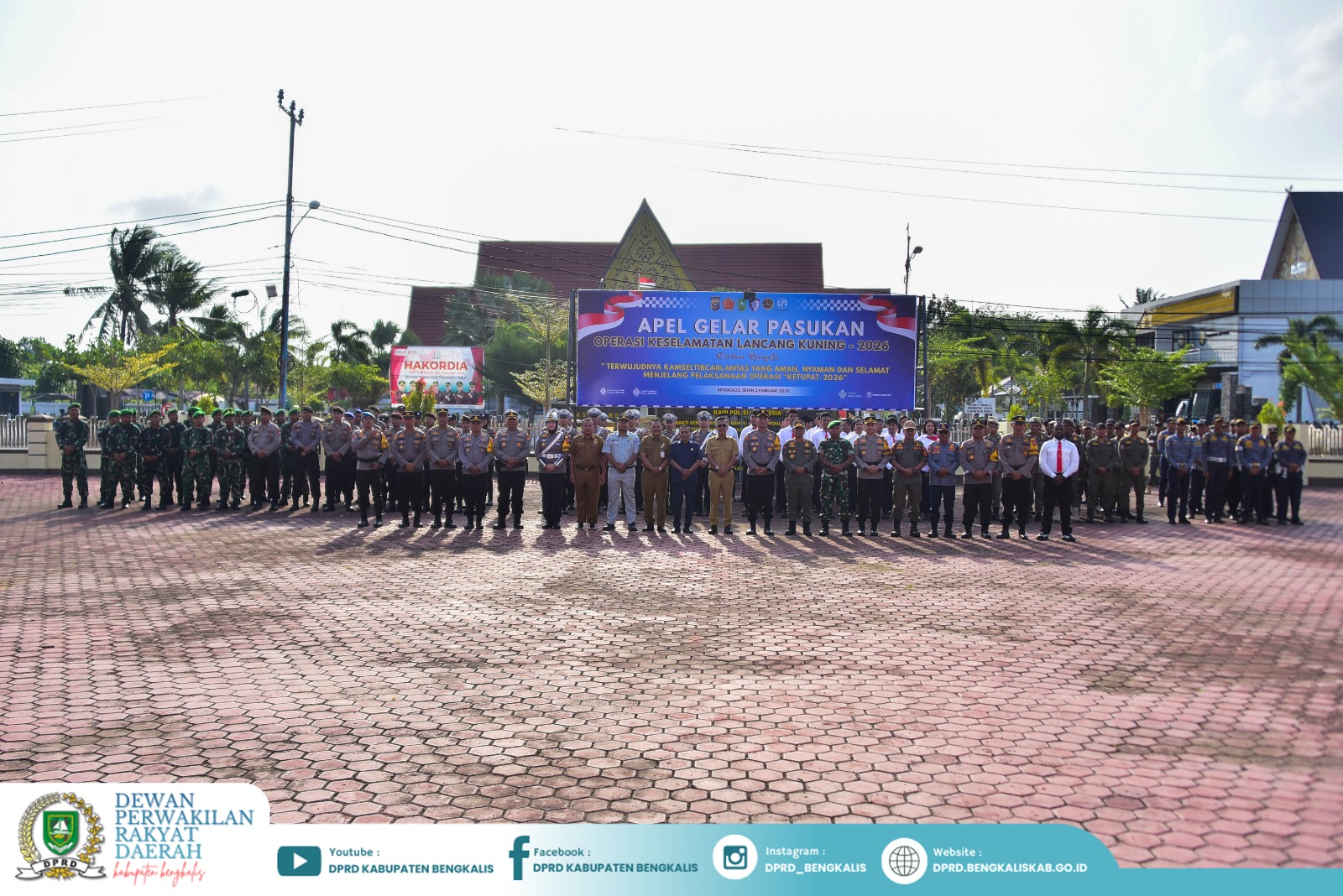 Bengkalis, Humas DPRD — Ketua DPRD Kabupaten Bengkalis yang diwakili Sekretaris Komisi II DPRD Kabupaten Bengkalis, Rindra Wardana alias Iyan Kancil, menghadiri Apel Gelar Pasukan Operasi Keselamatan Lancang Kuning Tahun 2026 yang digelar Polres Bengkalis, Senin (2/2/2026) pagi, di halaman Mako Polres Bengkalis.