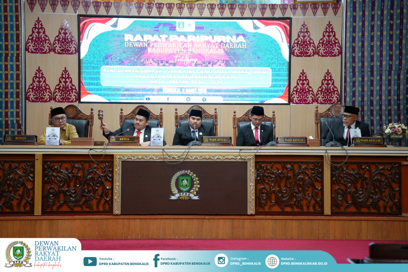 Bengkalis, Humas DPRD – Dewan Perwakilan Rakyat Daerah (DPRD) Kabupaten Bengkalis menggelar Rapat Paripurna dengan agenda pengucapan sumpah/janji Pengganti Antar Waktu (PAW) Anggota DPRD Kabupaten Bengkalis masa jabatan 2024–2029, Senin (9/3/2026).