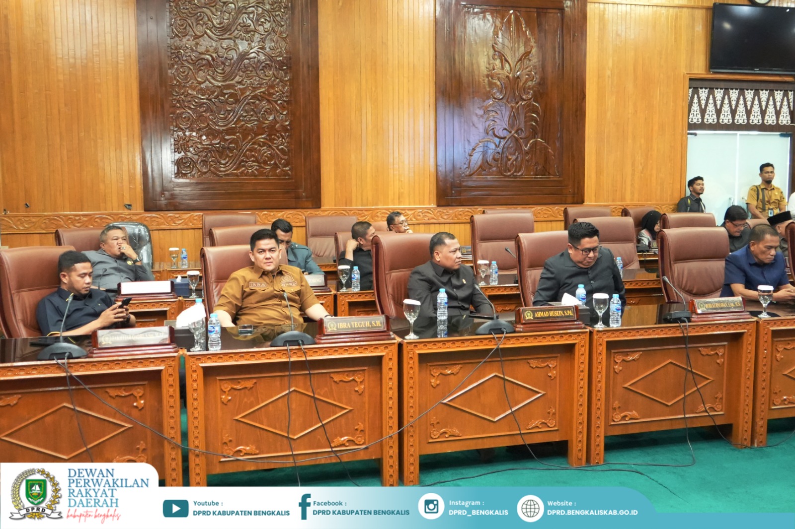 Rapat paripurna tersebut dipimpin oleh Wakil Ketua II DPRD Bengkalis, Hendrik Firnanda Pangaribuan, didampingi Wakil Ketua III, H. Misno serta Bupati Bengkalis diwakili oleh Wakil Bupati Bengkalis, Dr. H. Bagus Santoso.
