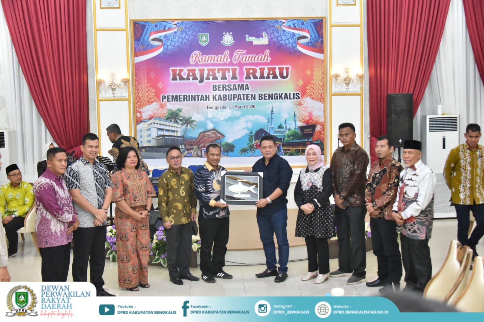 Bengkalis, Humas DPRD – Ketua DPRD Kabupaten Bengkalis diwakili Wakil Ketua III H. Misno menghadiri kegiatan silaturahmi dan ramah tamah yang dirangkaikan dengan makan malam bersama Kepala Kejaksaan Tinggi (Kajati) Riau, Dr. Sutikno, S.H., M.H., beserta Ketua Ikatan Adhyaksa Dharmakarini (IAD) Wilayah Riau bersama Pemerintah Kabupaten Bengkalis di Ruang VVIP Wisma Daerah Sri Mahkota Bengkalis, Selasa (31/03/2026). Kegiatan tersebut menjadi semakin istimewa dengan kehadiran jajaran Kejaksaan Tinggi Riau.