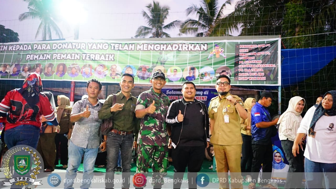 Wakil Ketua I DPRD Bengkalis Serahkan Piala Juara I Voli Putri Bermasa Cup I di Desa Petani